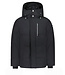 zonder in te leveren op warmte. Het strakke, eigentijdse silhouet in diepzwart wordt versterkt door een asymmetrische rits en verfijnd gestikte panelen die zorgen voor een moderne, gelaagde look. De ruime capuchon is zowel afneembaar als verstelbaar, ideaal voor wisselende weersomstandigheden.