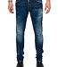 Blue jeans van het merk MYBRAND. De jeans heeft een destroyed look en verf spetters, verder heeft de..