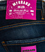 Blue jeans van het merk MYBRAND. De jeans heeft een destroyed look en verf spetters, verder heeft de jeans een roze merk tab.